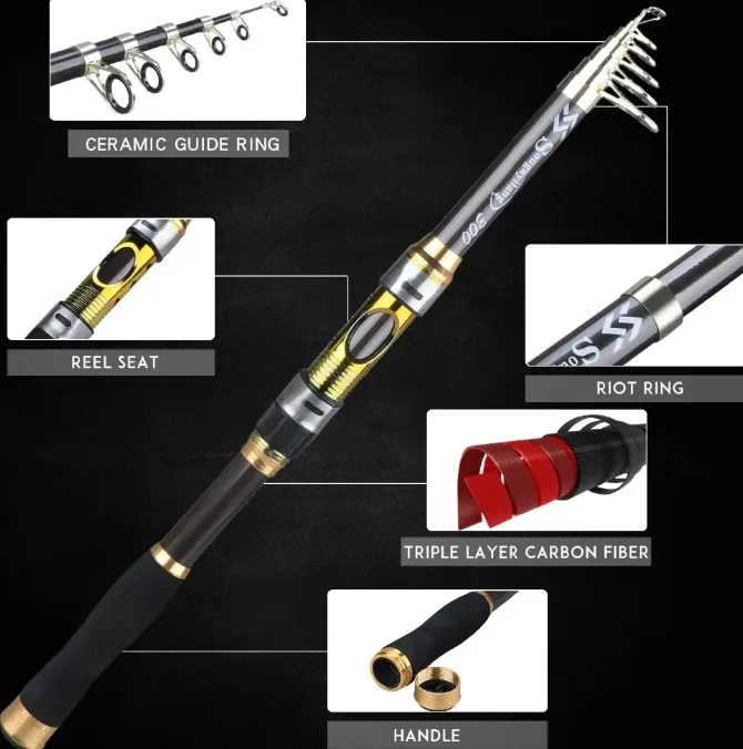 Product Features: The material used in our product is carbon. Category is Telescopic Fishing Rod. Hardness is Super Hard. Location is Stream. Product Original from cn (Origin).