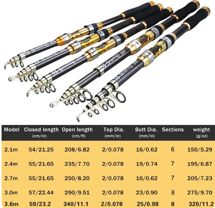 Check this out: Sougayilang 2.1M 2.4M 2.7M 3.0M Spin Fishing Rod Ultra Light Carbon Fiber Portable Telescopic Fishing Rod for Trout Carp